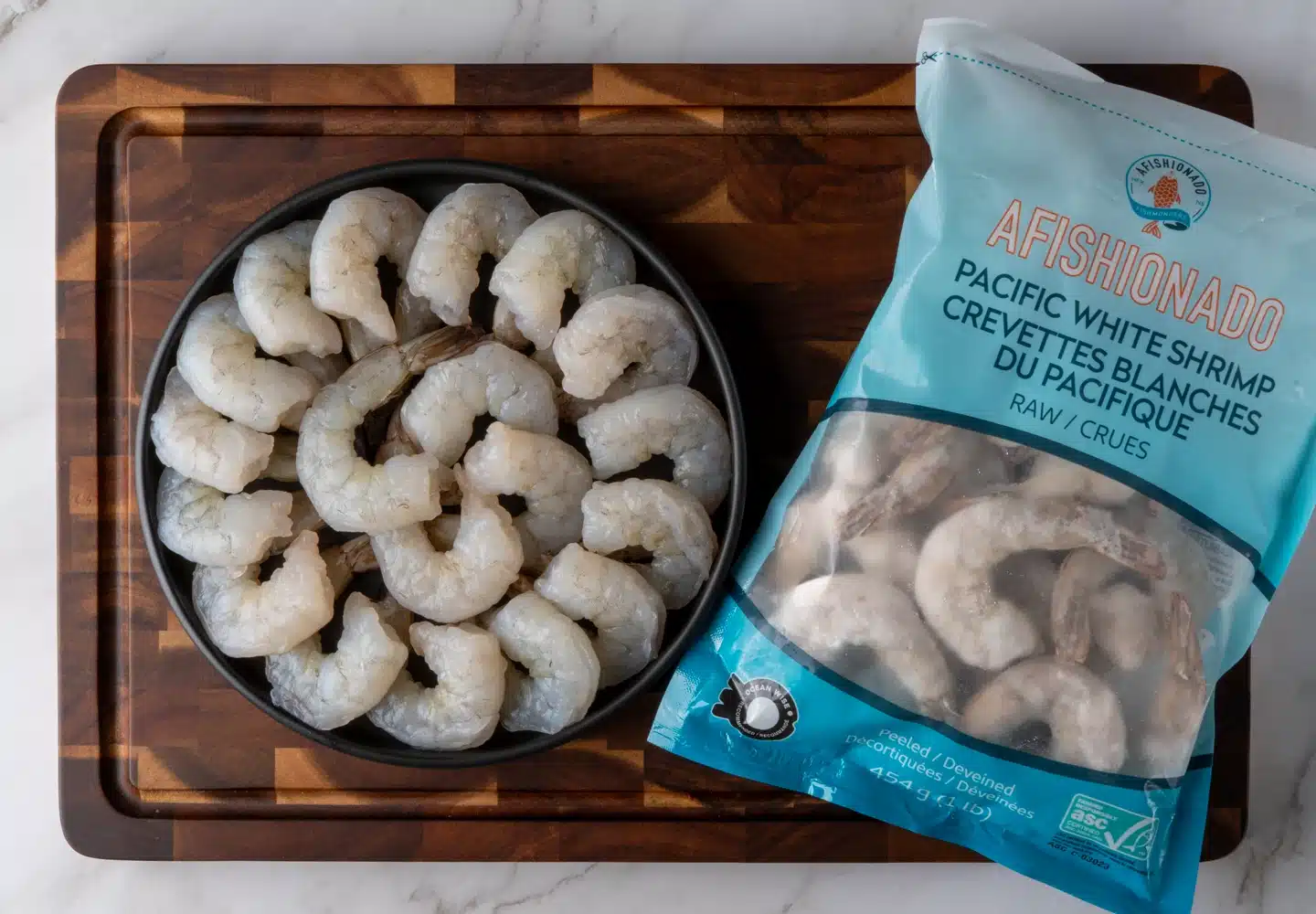 Shrimp are done when they turn pink and curl into a loose “C”. Avoid overcooking for best texture.